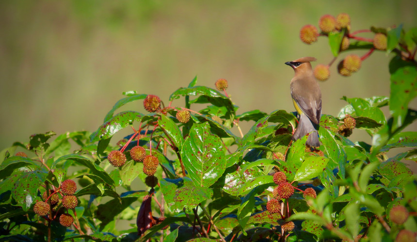 Ruby-Throated Hummingbirds (Archilochus colubris) and Cedar Waxwings (Bombycilla cedrorum) my grabbed my full attention this week. At least four hummingbirds have taken up residence at Hogsback Acre and I've seen even more in my travels around the state. Our three nectar feeders are being used regularly, with a sub-adult male (born this season) vigorously defending this important food source. The males develop a patch of ruby-colored feathers on the throat (hence the species name). We've also seen a female with an unusual bill the appears to be damaged from an injury or malformed from birth.